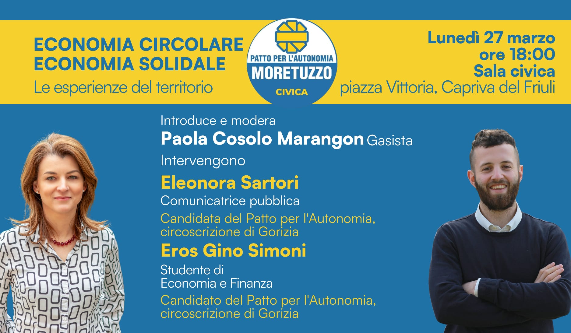 E’ il titolo dell’incontro promosso dai candidati con il Patto per l’Autonomia nella circoscrizione di Gorizia, Eleonora Sartori, comunicatrice pubblica ed Eros Gino Simoni, studente di economia e finanza.
