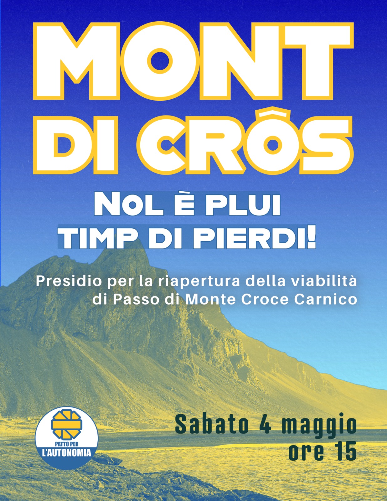 Passo di Monte Croce Carnico. Sabato 4 maggio, alle ore 15, presidio del Patto per l’Autonomia per la riapertura della viabilità interrotta