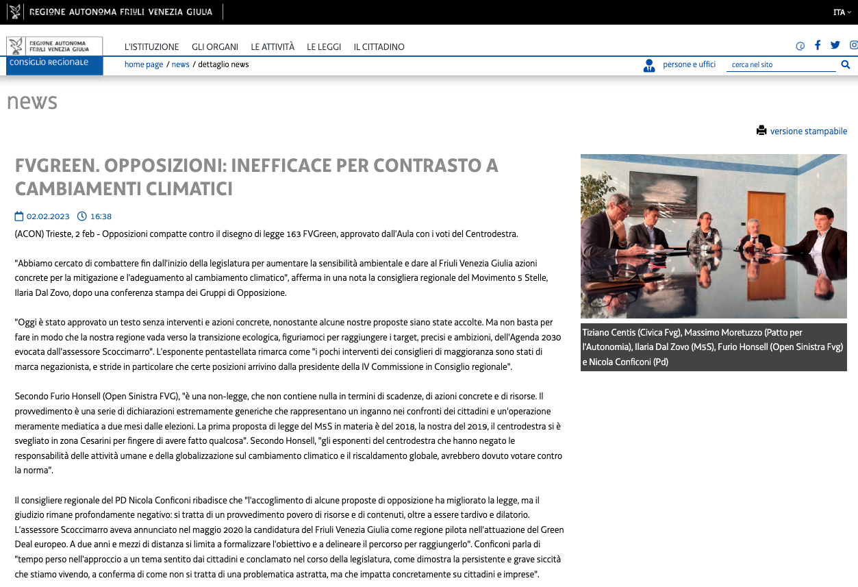 FVGreen. Opposizioni: inefficace per contrasto a cambiamenti climatici