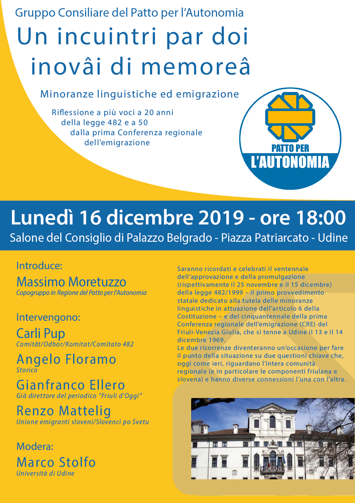 Il Patto per l’Autonomia partecipa alla III Conferenza sulla lingua friulana e deposita due interrogazioni