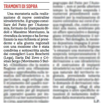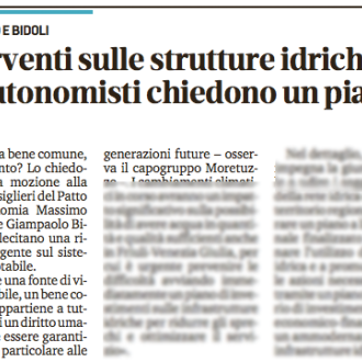 Il Patto sostiene la necessità di sottrarre lo sfruttamento delle acque dagli interessi economici esterni al territorio. Gli utili della produzione dell'energia elettrica devono essere indirizzati primariamente a sostenere i territori nei quali hanno sede le centrali. Per questa ragione è necessario instituire una società regionale per la gestione degli impianti idroelettrici che ne assuma il controllo a scadenza delle concessioni. Contestualmente è necessario ridurre il numero delle cantrali che spesso impattano sulle risorse idriche senza produrre significativi quantitativi di energia elettrica.