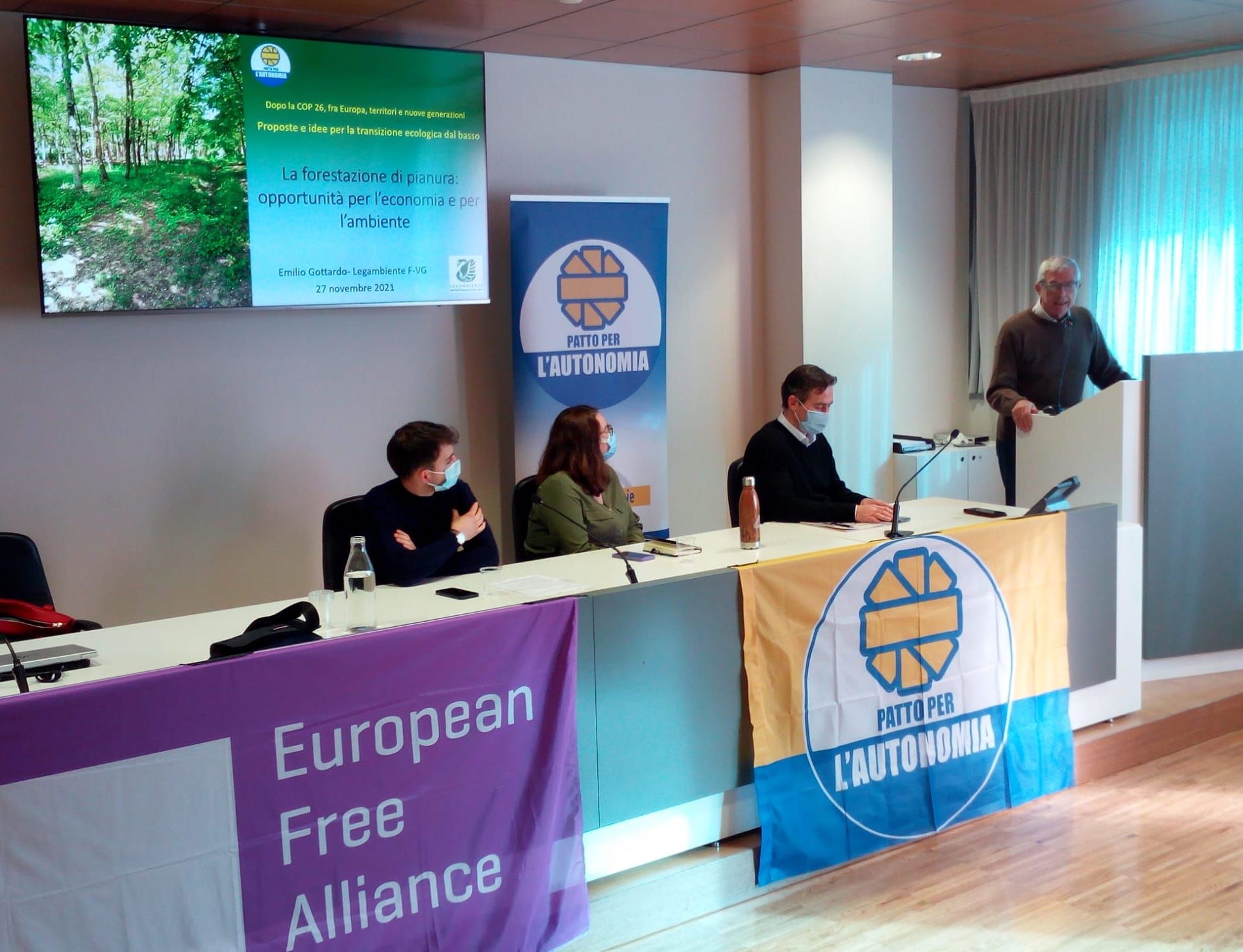 Serve subito una politica reale di contrasto, anche a livello locale, ai cambiamenti climatici e che coinvolga le comunità dal basso, in un processo partecipativo. Un’istanza condivisa da tutti i relatori dell’incontro “Dopo la COP26, fra Europa, territori e nuove generazioni”, organizzato dal Gruppo Consiliare del Patto per l’Autonomia, oggi (27 novembre, ndr) a Udine, in Sala Pasolini, nel Palazzo della Regione, che ha registrato un’ottima partecipazione di pubblico.