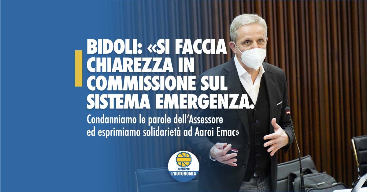 Bidoli: «Si faccia chiarezza in Commissione sul sistema emergenza. Condanniamo le parole dell’Assessore ed esprimiamo solidarietà ad Aaroi Emac»