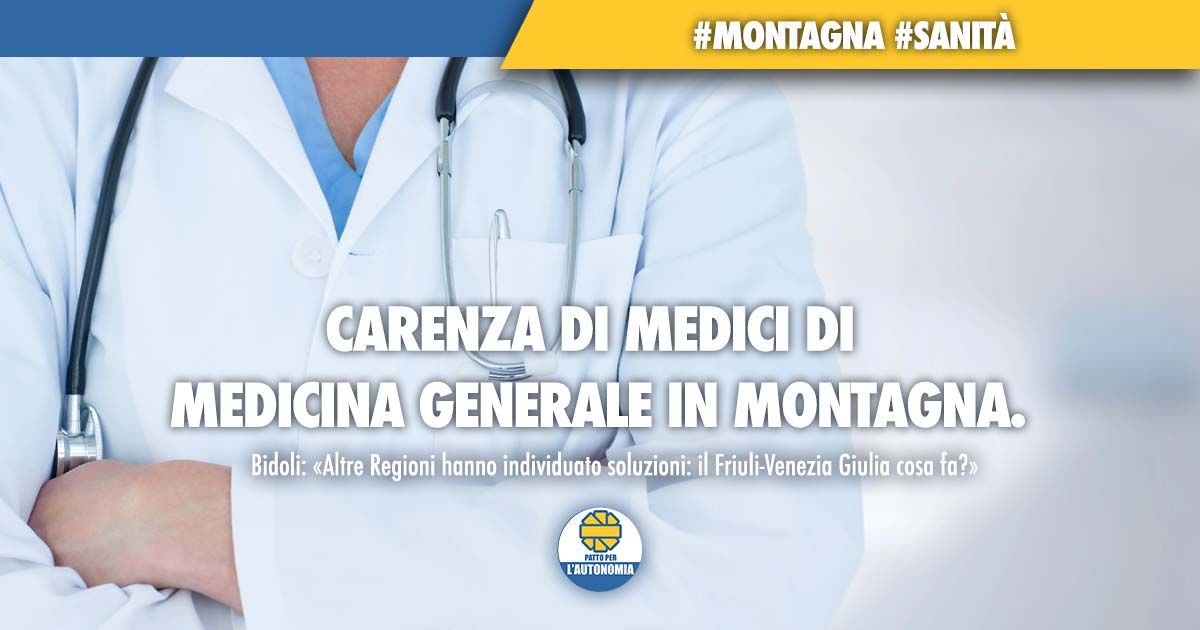 «La carenza di medici di medicina generale non è certo una novità, ma le dimensioni che sta assumendo e la gravissima situazione che sta vivendo l’area della montagna impongono una riflessione urgente da parte della governance regionale». Questo il commento del consigliere del Patto per l’Autonomia Giampaolo Bidoli a margine del question time odierno (28 aprile, ndr) durante il quale ha presentato una interrogazione sul tema, rivolta all’Assessore alla salute.