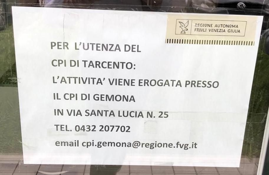 Centro per l’impiego di Tarcento chiuso dal 2018.