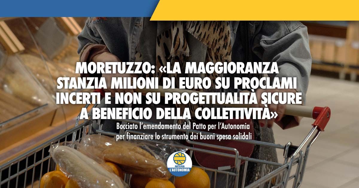 Bocciato l’emendamento del Patto per l’Autonomia per finanziare lo strumento dei buoni spesa solidali