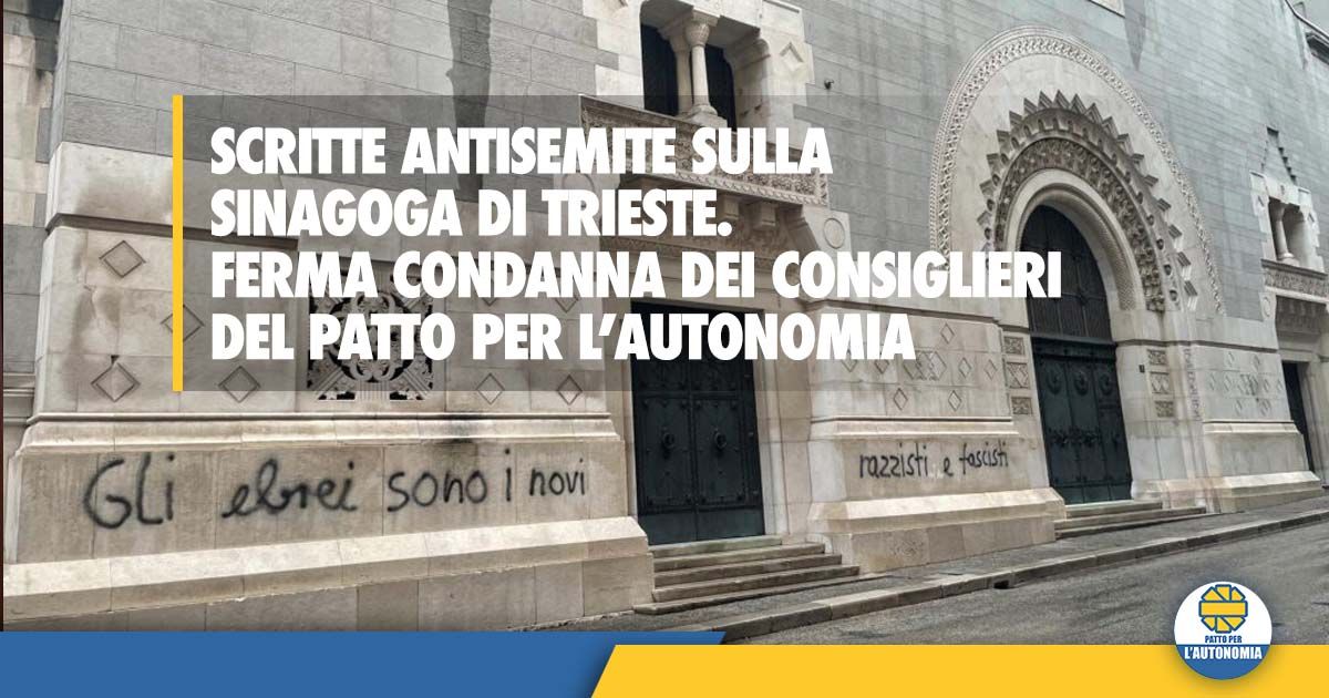 Scritte antisemite sulla sinagoga di Trieste. Ferma condanna dei consiglieri del Patto per l’Autonomia