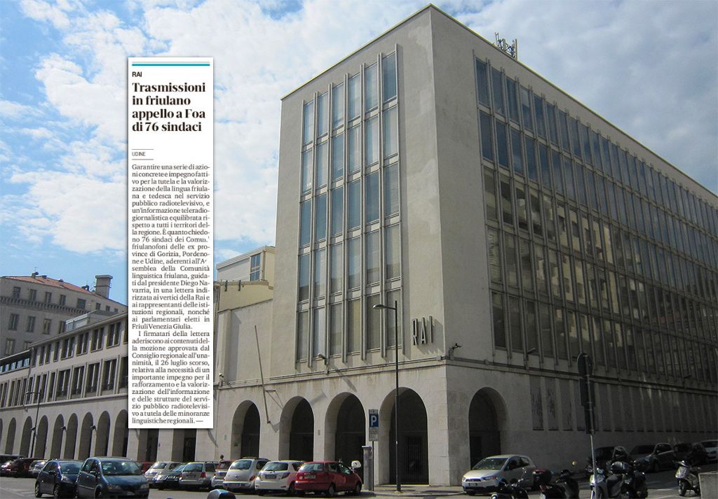 A fine luglio il Consiglio regionale aveva approvato all’unanimità la mozione del Gruppo consiliare del Patto per l’Autonomia che chiedeva di tutelare la sede Rai di Udine e di rafforzarla nel suo ruolo di presidio territoriale per la produzione di trasmissioni radiotelevisive in lingua friulana, nel pieno rispetto della normativa di tutela delle lingue minoritarie.
