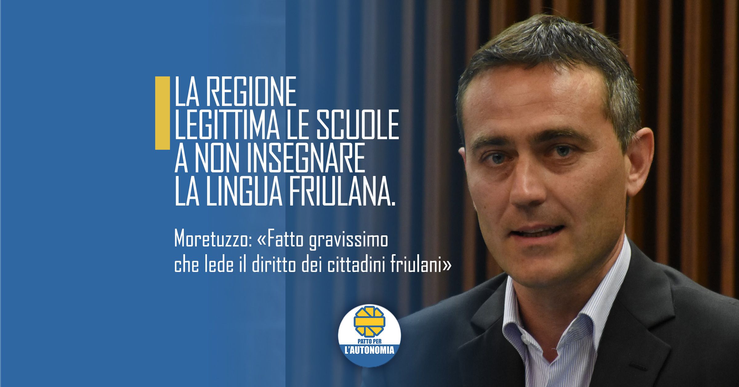 «La Regione legittima le scuole a non insegnare la lingua friulana, violando apertamente la normativa, statale e regionale, di tutela che invece prevede l’uso, l’insegnamento e l’apprendimento del friulano nel percorso educativo. Siamo di fronte a un fatto gravissimo, che lede il diritto dei cittadini friulani», denuncia il capogruppo del Patto per l’Autonomia, Massimo Moretuzzo, annunciando la presentazione di una interrogazione del Gruppo Consiliare per fare chiarezza su una vicenda che ha dell’incredibile.