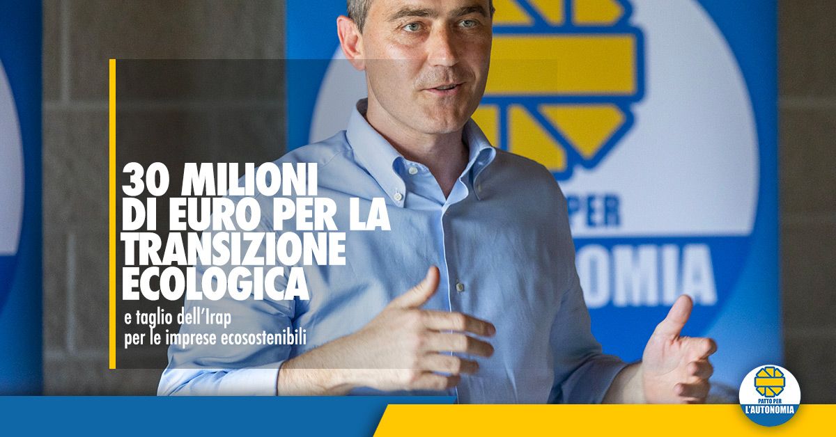 30 milioni di euro per la transizione ecologica e taglio dell’Irap per le imprese ecosostenibili