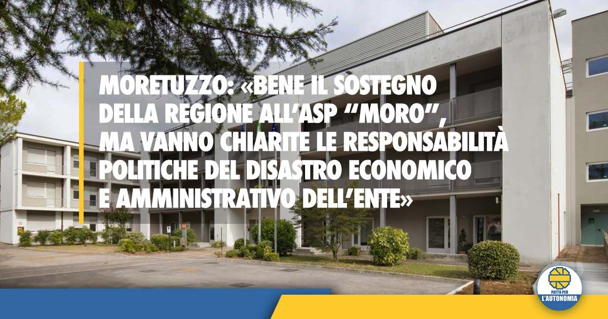 Moretuzzo: «Bene il sostegno della Regione all’Asp “Moro”, ma vanno chiarite le responsabilità politiche del disastro economico e amministrativo dell’ente»