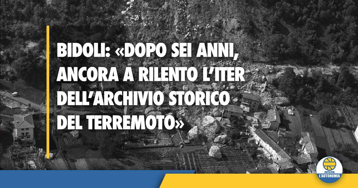Bidoli: «Dopo sei anni, ancora a rilento l’iter dell’archivio storico del terremoto»