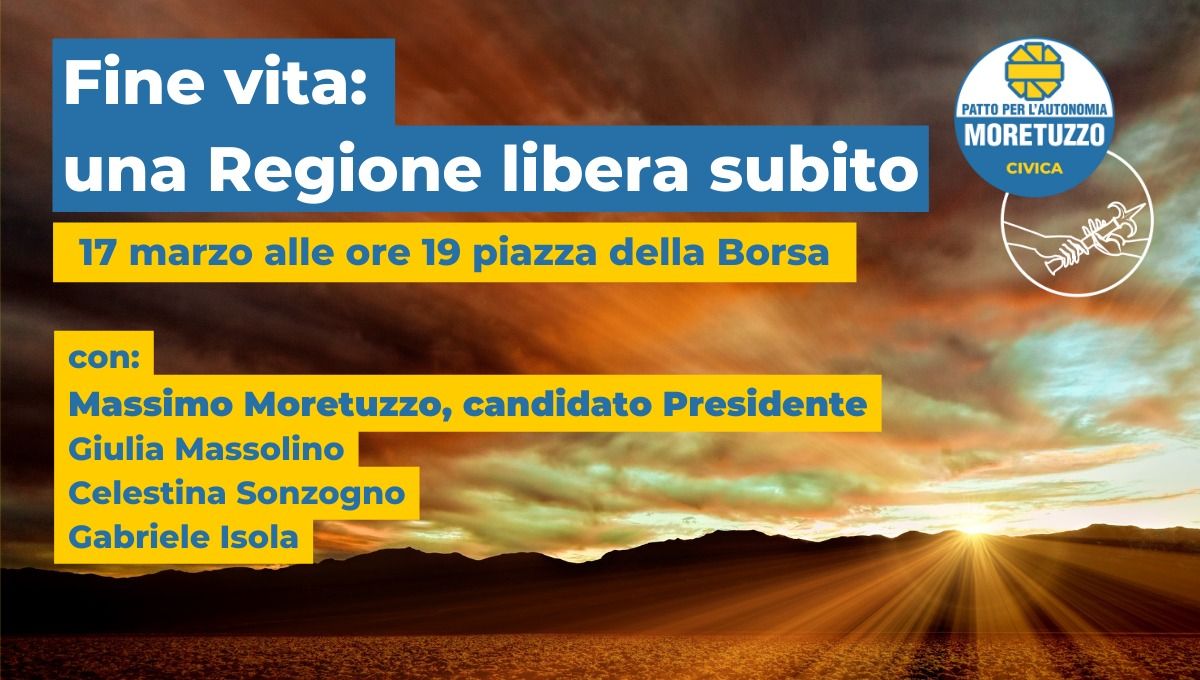 Venerdì 17 marzo, alle ore 19.00 in Piazza della Borsa a Trieste, Moretuzzo, assieme alla candidata nella circoscrizione di Trieste con il Patto per l’Autonomia Giulia Massolino, tratterà del delicato tema del fine vita.