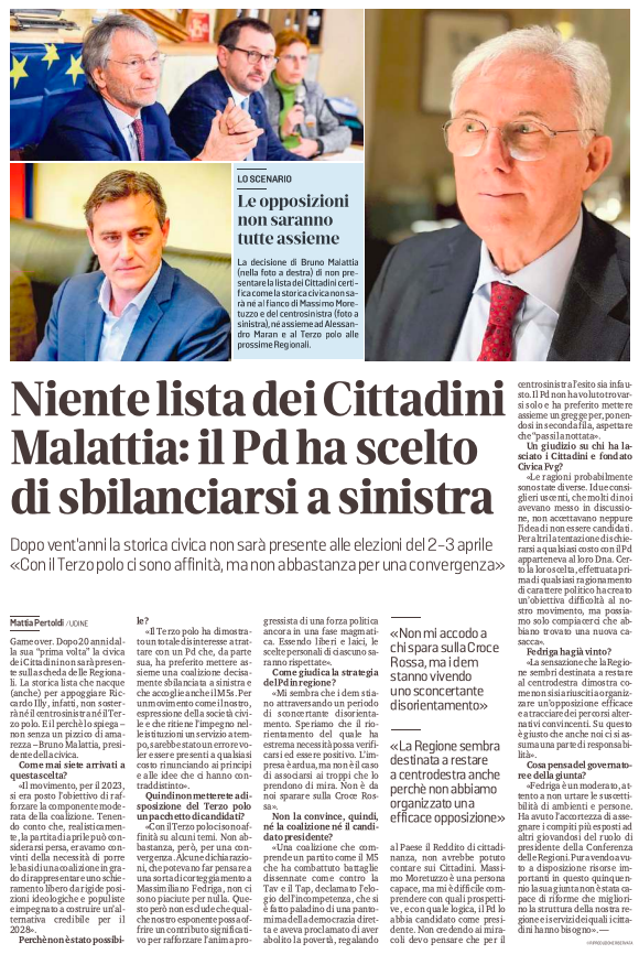 Niente lista dei Cittadini. Malattia: il Pd ha scelto di sbilanciarsi a sinistra