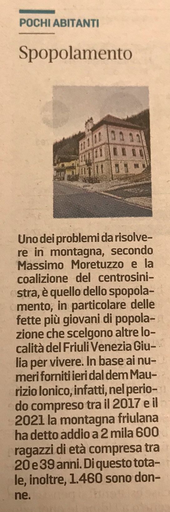 Moretuzzo apre in Carnia 'Rimettiamo al entro chi è rimasto ai margini'