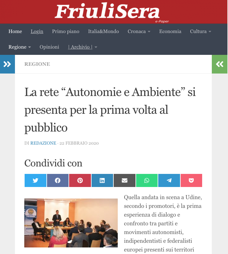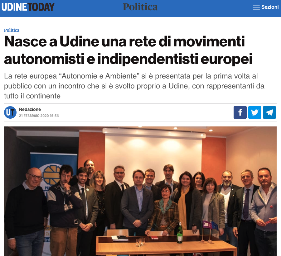 La rete europea “Autonomie e Ambiente” si è presentata per la prima volta al pubblico con un incontro che si è svolto proprio a Udine, con rappresentanti da tutto il continente.