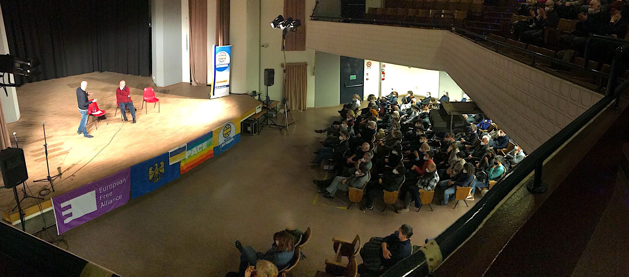 Auditorium gremito per l’incontro organizzato dal Patto per l’Autonomia a Codroipo con Floramo, Teatro Incerto e operatori del territorio