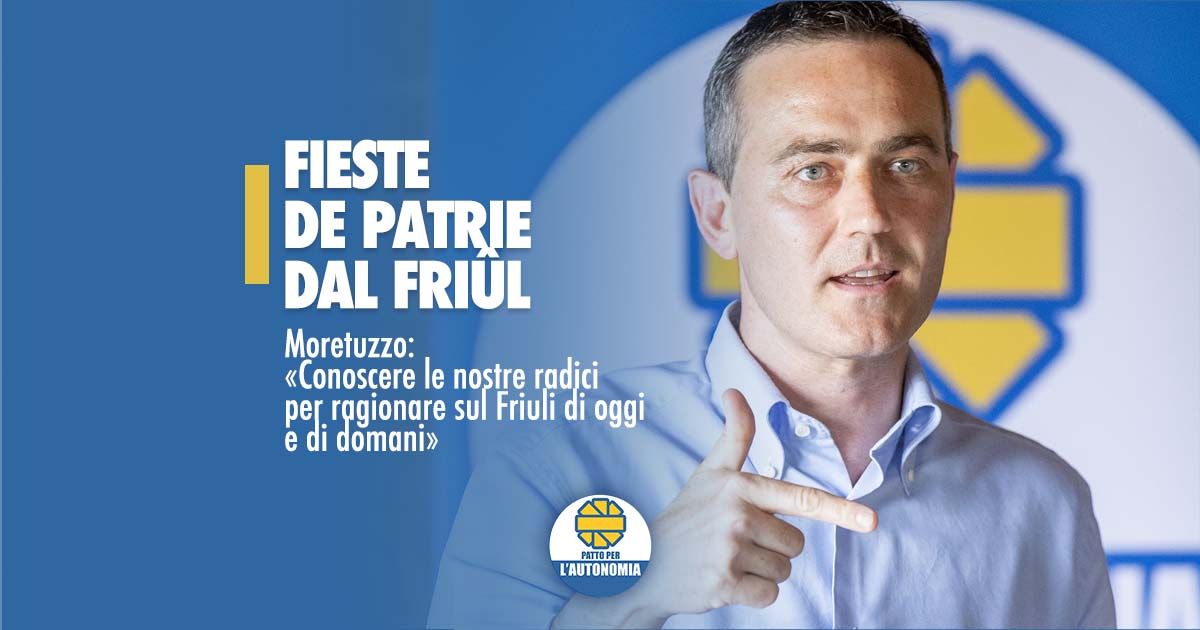 «La Fieste de Patrie dal Friûl ci dà l’opportunità di ragionare del Friuli di oggi e di progettare quello di domani, di ricordare il suo profilo multiculturale e multilingue, la sua tradizione di autogoverno, la sua vocazione a mettersi in relazione con il resto dell’Europa e del mondo: radici e valori da condividere e da trasmettere in particolare alle giovani generazioni», afferma il segretario del Patto per l’Autonomia e capogruppo in Consiglio regionale Massimo Moretuzzo, alla vigilia della giornata in cui si celebra la nascita dello Stato patriarcale friulano.