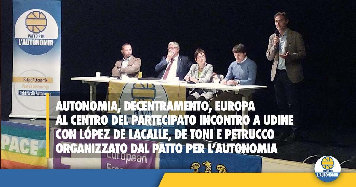 Autonomia, decentramento, Europa al centro del partecipato incontro a Udine con López de Lacalle, De Toni e Petrucco organizzato dal Patto per l’Autonomia