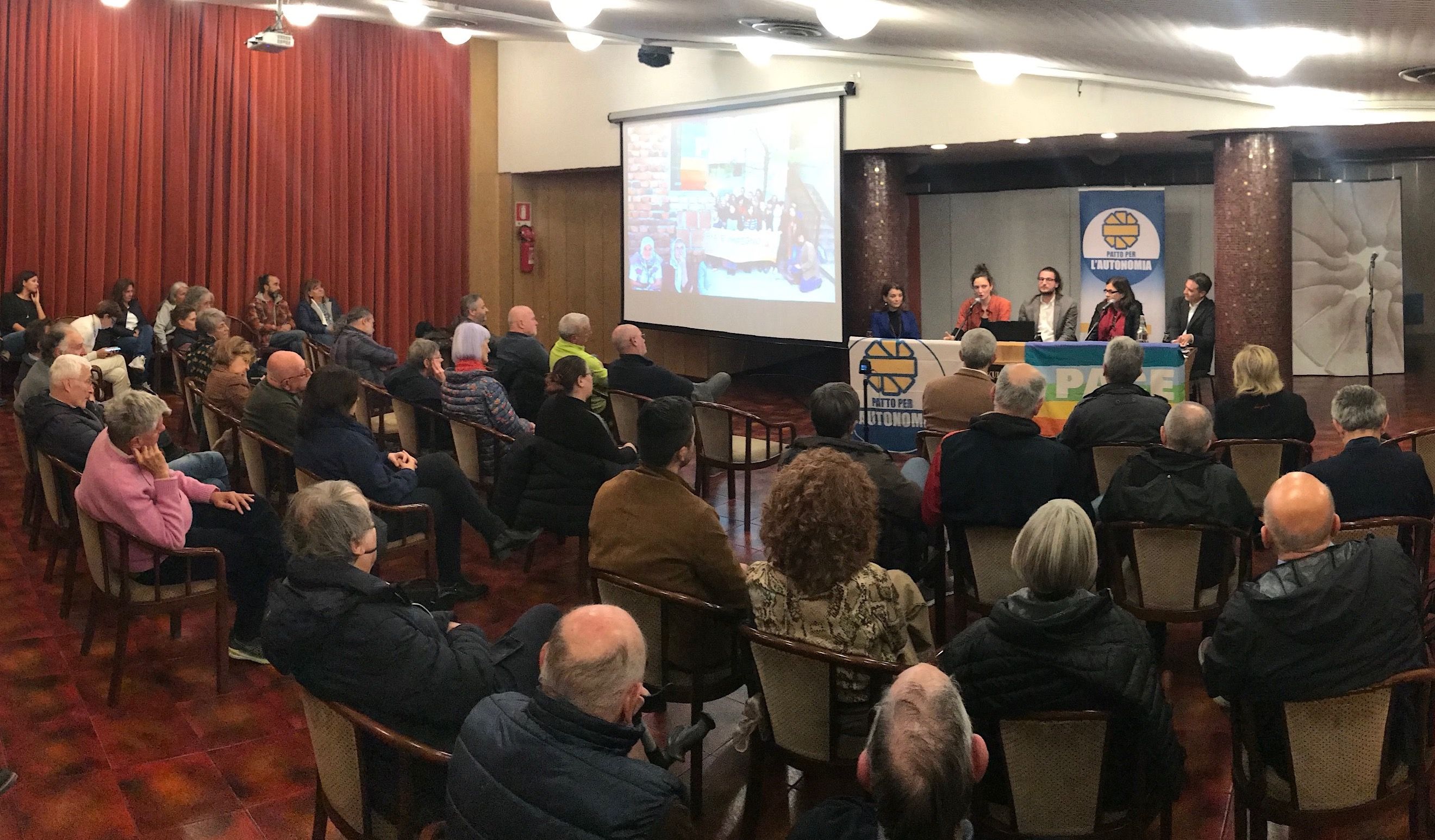 L’incontro, introdotto da Eleonora Sartori, consigliera comunale di Gorizia, con una riflessione sulle esperienze concrete di cooperazione che ogni giorno mettono in campo le persone sul territorio, è stato moderato dal sindaco di Turriaco Enrico Bullian. In sala, tra il numeroso pubblico, diversi amministratori locali e regionali. A chiudere l’appuntamento è stato Moretuzzo, tra i promotori del progetto del Distretto di Economia Solidale (DES) del Medio Friuli, nato dall’esperienza della Cooperativa agricola di comunità fondata nel 2016 (quando era sindaco del Comune di Mereto di Tomba) che ha sviluppato la filiera corta “Pan e farine dal Friûl di Mieç” per la produzione di farina e di pane in cui, oltre agli aspetti produttivi, sono stati curati anche quelli comunitari e sociali, grazie all’attivazione di relazioni tra i produttori, i trasformatori e i cittadini/consumatori, e completata, pochi mesi fa, con la gestione diretta di un panificio a Udine, il “Pan dal DES”. «È stato l’ultimo tassello di un percorso partito dalla coltivazione del frumento su terreni gestiti collettivamente, dà forza sociale al processo che abbiamo avviato per generare un’economia positiva attraverso il coinvolgimento diretto dei cittadini, un passaggio che riteniamo indispensabile, anche come Patto per l’Autonomia, verso un cambiamento necessario e possibile. Crediamo infatti fortemente, e continueremo a impegnarci in questo senso, nella costruzione di una rete di economia solidale, basata sui principi della sostenibilità sociale e ambientale, in grado di valorizzare il capitale territoriale e di non essere in balia delle dinamiche della globalizzazione neoliberista».
