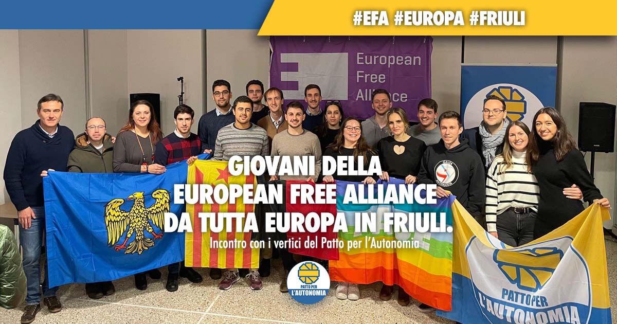 Si sono ritrovati in Friuli, per una tre giorni di incontri e laboratori, i giovani autonomisti dell’EFAY – European Free Alliance Youth, il gruppo giovanile di EFA/ALE – European Free Alliance/Alleanza Libera Europea di cui fa parte anche il Gruppo giovani del Patto per l’Autonomia, impegnato a sensibilizzare le giovani e i giovani sulla diversità dell’Europa e sulla promozione del rispetto per la ricchezza culturale, linguistica, sulla sostenibilità ambientale, sulla parità di genere. «Abbiamo respirato un clima di condivisione, di superamento di stereotipi e pregiudizi e soprattutto di volontà di cambiamento», spiega Gabriele Violino, referente del Gruppo giovani del Patto per l’Autonomia.