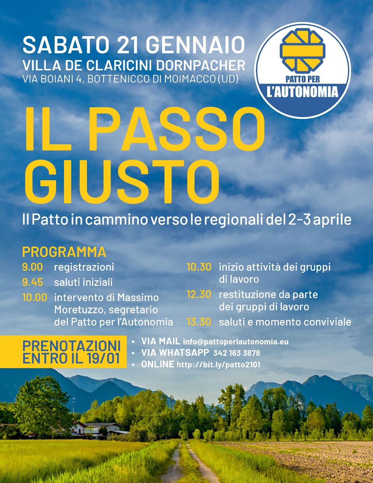 Il Patto in cammino verso le regionali. “Il passo giusto” sabato 21 gennaio a Bottenicco di Moimacco
