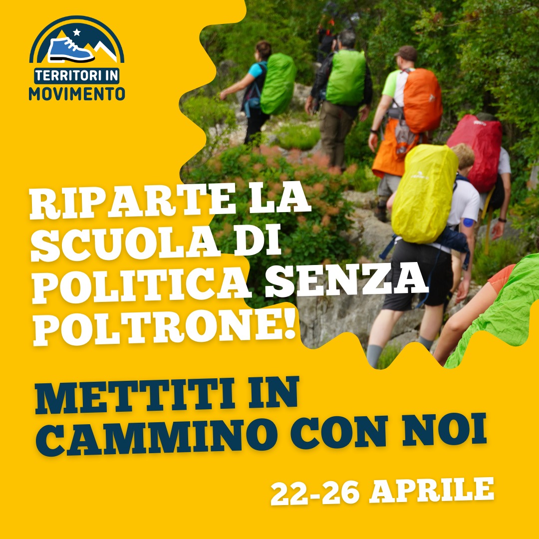 Unire l’agire politico all’essenza dei territori. Confrontarsi su temi come comunità, confini, giustizia ambientale e sociale, ma il tutto camminando. Questo il senso più profondo di “Territori in movimento”, la prima scuola di politica senza poltrone promossa dal Patto per l’Autonomia e aperta a tutti coloro che hanno a cuore il proprio territorio e cercano un'opportunità innovativa di formazione politica. Dopo la prima edizione del 2023 da Monfalcone a Gorizia torneremo infatti in cammino, zaino in spalla, lungo un territorio alla ricerca di spunti, idee e sviluppi direttamente dai paesaggi, comunità e persone che incontrerà.