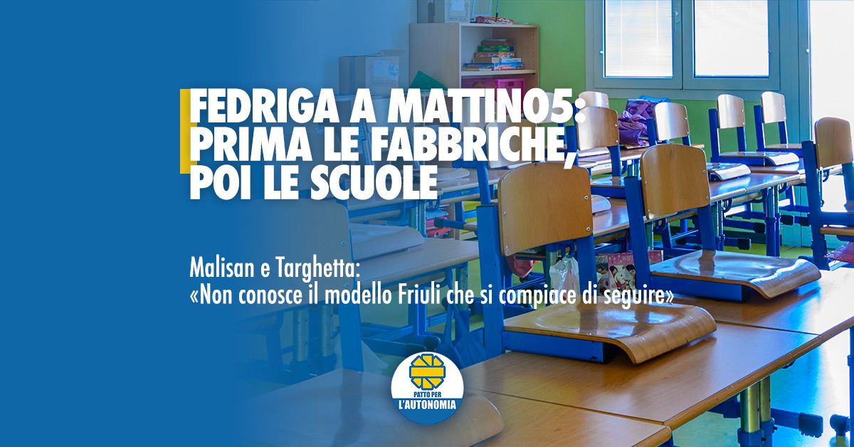 Fedriga a Mattino5: prima le fabbriche, poi le scuole